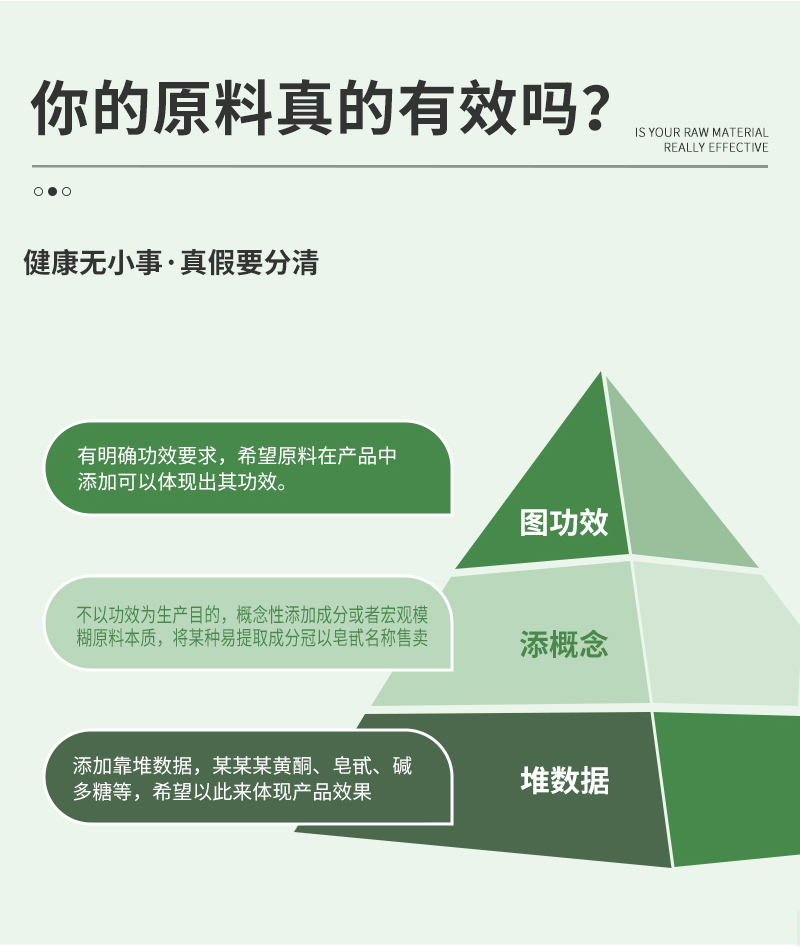 公司銷售的提取物產(chǎn)品均為原料(普通食品、藥食同源食品、新資源食品,以下簡(jiǎn)稱“原料”),產(chǎn)品僅面向具有相關(guān)資質(zhì)的食品廠,飲料廠等相關(guān)單位銷售,不做產(chǎn)品功效功能描述,不針對(duì)個(gè)體消費(fèi)者銷售。除原料產(chǎn)品外,涉及其他種類原料產(chǎn)品以外的僅為行業(yè)內(nèi)交流,不對(duì)外進(jìn)行零售,如有需要請(qǐng)聯(lián)系公司進(jìn)行詳細(xì)咨詢。